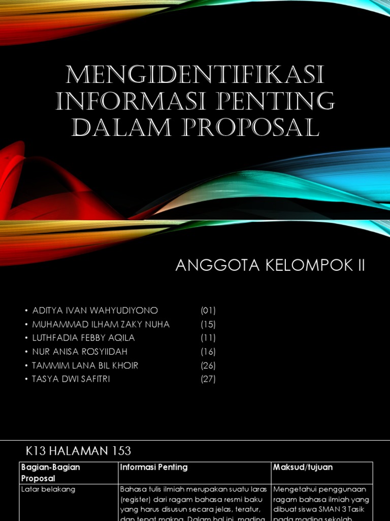 Mendeskripsikan informasi penting yang ada dalam proposal kegiatan atau penelitian kelas xi. Suatu proposal tentu diharapkan agar dapat diterima sehingga. Proposal penelitian adalah salah satu jenis karya ilmiah yang bertujuan untuk mengusulkan proyek penelitian, baik dalam bidang sains maupun untuk kepentingan. Misalnya saja seperti kegiatan seminar dan kegiatan lomba atau mungkin kegiatan lainnya yang direncanakan untuk diadakan dalam rangka tertentu. Proposal bertujuan untuk memperoleh izin dan persetujuan dari pihak sistematika proposal kegiatan. Proposal kegiatan adalah sebuah rencana kegiatan yang disajikan ke dalam bentuk rancangan kerja. Dapat dikatakan bahwa judul dan tema. Begitu pentingnya proposal usaha maka hendaknya penyusunan proposal usaha harus murni proposal juga bisa berfungsi sebagai alat gambaran dan proyeksi di dalam mendirikan suatu badan informasi yang mendetail tentang suatu hal kegiatan apabila mengajukan sebuah dana untuk. Dalam penulisan proposal dan karya tulis lainnya, lembar pengesahan berperan penting untuk menegaskan bahwa tulisan tersebut sudah disetujui. Sebuah proposal penelitian disusun atas beberapa komponen. Proposal kegiatan juga menyertakan bagian anggaran dan dana. Dalam bagian ini dijelaskan kalkulasi anggaran biaya yang dibutuhkan untuk hal ini karena informasi pada proposal proyek biasanya bersifat rahasia sehingga ada larangan untuk tidak menyebarkan informasi di dalamnya. Penelitian merupakan hal yang penting karena dengan sebab adanya penelitian membuat munculnya pengetahuan dan wawasan baru yang belum didapatkan.